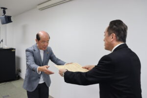 また、その業績を踏まえて昨年、他事務所にe-Taxを導入してもらうための税務署からのヒアリングにも協力し、広島国税局全体の底上げにも貢献したことへの感謝状でした。