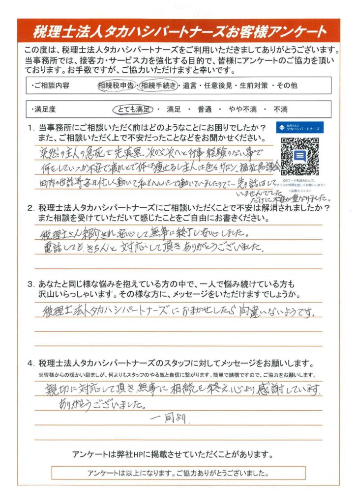 税理士さんを紹介され、無事に終了し安心しました。電話してもきちんと対応して頂きありがとうございました。