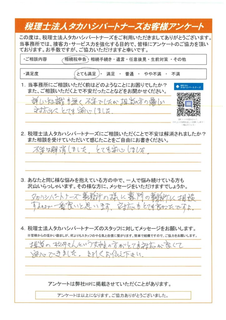 税理士法人タカハシパートナーズにご相談いただくことで不安は解消されましたか?また、相談を受けていただいて感じたことを自由にお書きください。