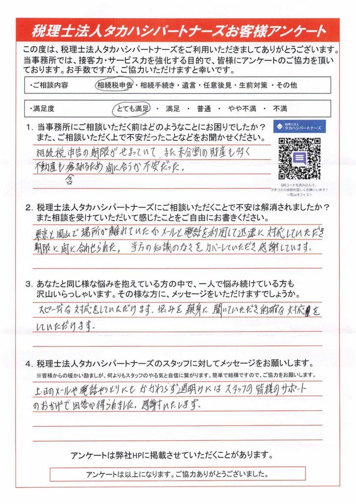 税理士法人タカハシパートナーズにご相談していただくことで不安は解消されましたか?また相談を受けていただいて感じたことを自由にお書きください。