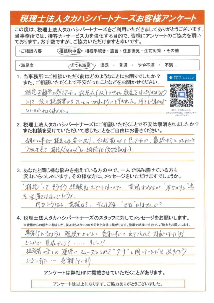 税理士法人タカハシパートナーズにご相談していただくことで不安は解消されましたか?また相談を受けていただいて感じたことを自由にお書きください。